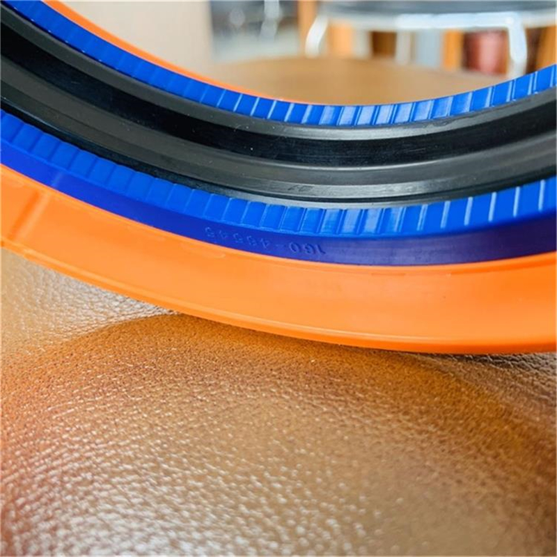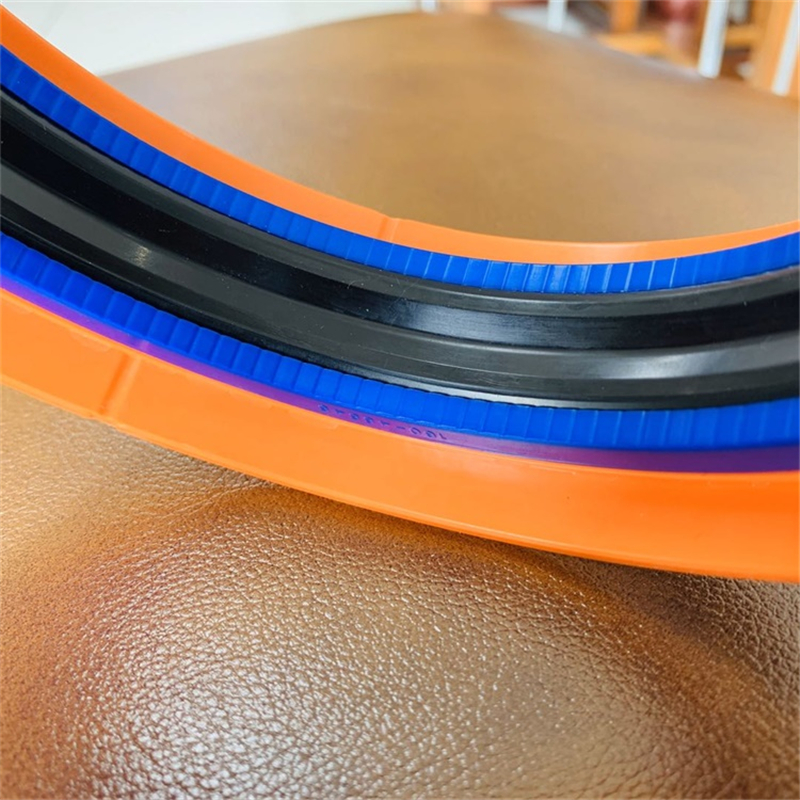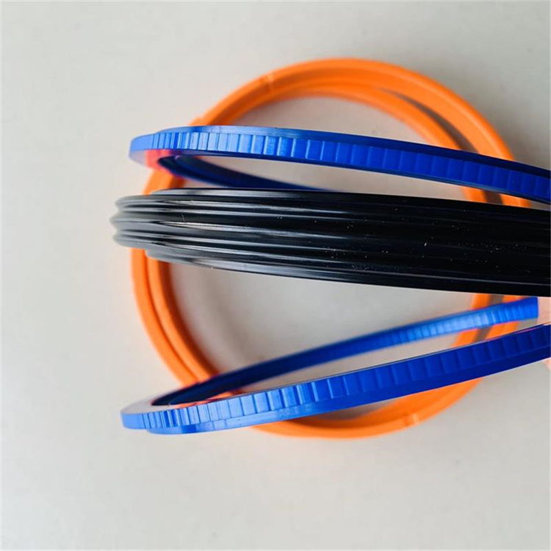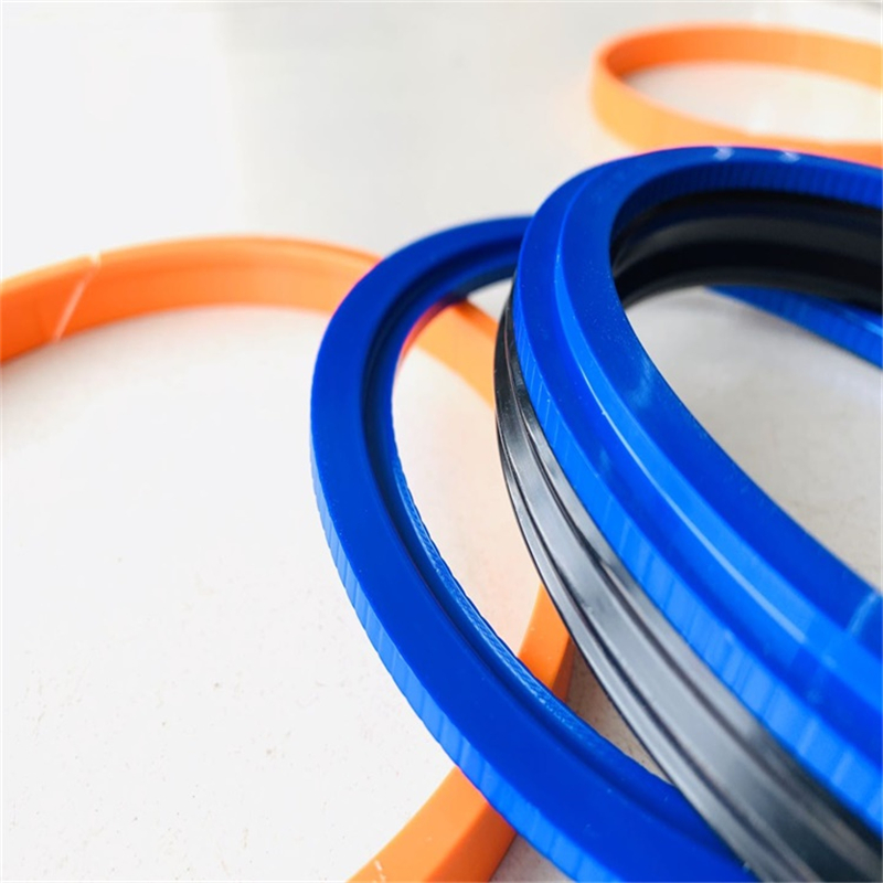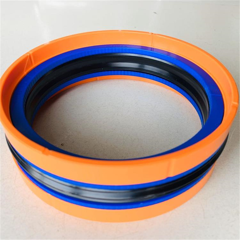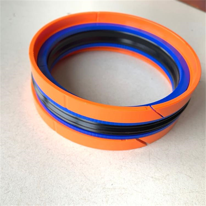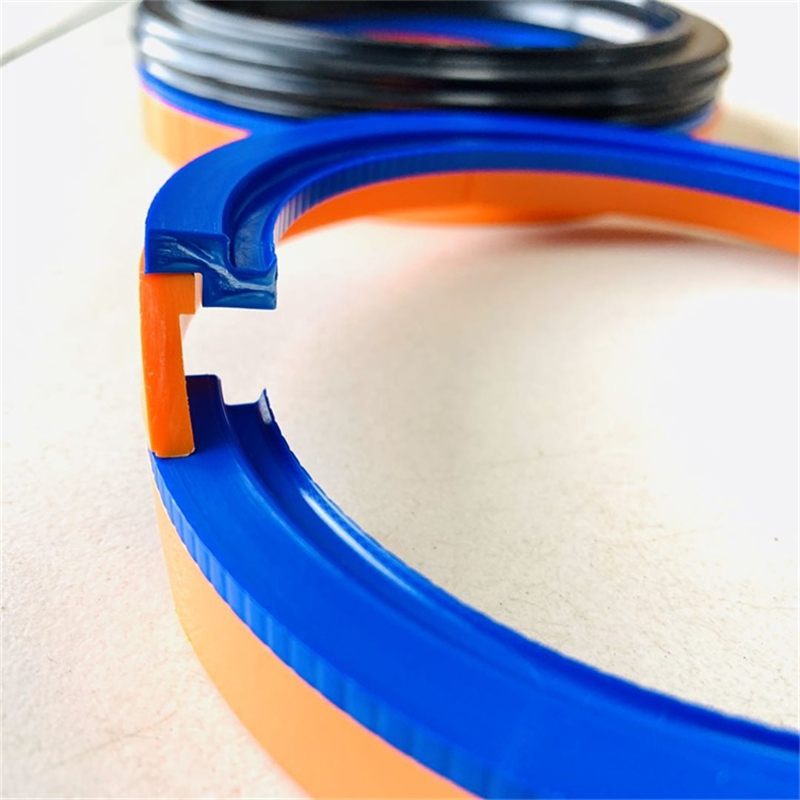 该组合密封圈由一个橡胶密封件,两个开口保护挡圈和两个开口的“L”形导向环组成,并对称的分置于橡胶密封件两侧。